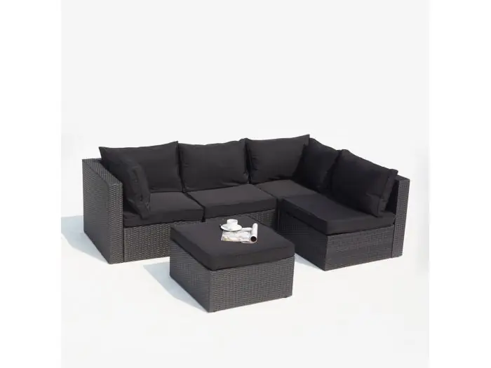 Modulaire 5-zits loungeset van zwart gevlochten hars MILANO