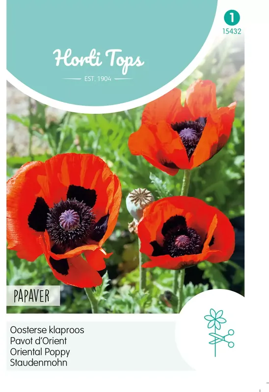 Oosterse klaproos – RoodVanaf mei tot juli op een zaaibedje en in oktober-november uitplanten.Papavers houden van droge en tamelijk arme grond. De zaaddozenworden gedroogd en gebruikt in boeketten.
