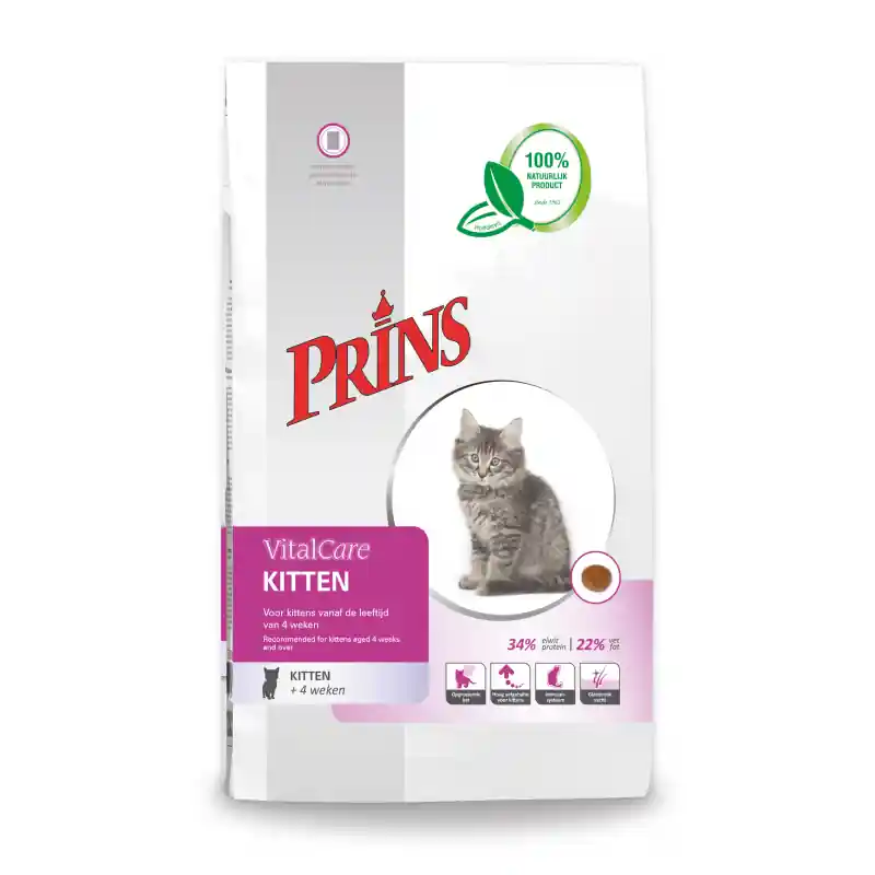 Prins VitalCare kitten is een hoogwaardige voeding speciaal voor jonge katjes die extra energie nodig hebben om te groeien. De voeding zorgt voor een goede weerstand en een optimale groei van spieren en botten. ?