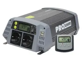 De Pro User zuivere sinus omvormer 600 watt is verkrijgbaar in verschillende vermogens en genereert uit een 12 volt accu een zuivere sinusspanning van 230 volt. Deze omvormers zijn uitstekend beveiligd tegen overbelasting. Daarnaast is deze inverter nog voorzien van een bedrade afstandsbediening met een LCD scherm. Deze Pro User omvormer is ideaal voor al je mobiele toepassingen in auto’s, caravans, campers, boten of vakantiewoningen.
