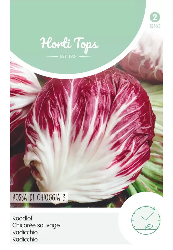 Roodlof – Rossa di Chioggia 3Van half juni tot eind juli buiten in regeltjes en ca. 3/4 weken later uitdunnen. Bij voorkeur niet verplanten. Zeer geschikt voor gemengde salades; radicchio wordt v????r de winter geoogst.