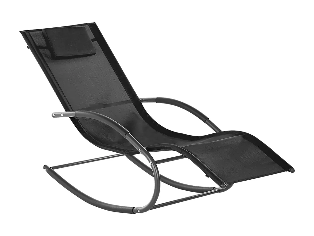 Exclusieve, zwarte ligbed om in te schommelen. Dit ligbed onderscheidt zich door zijn eigentijdse ontwerp en is een prachtige aanvulling op elke tuin, balkon of terras. De zitting, gemaakt van een duurzame stof, heeft een gewatteerde hoofdsteun die extra comfort biedt. De tuinligstoel is gemaakt met stalen geleiders voor een soepele en ontspannende schommelbeweging.Details: Producttype: Tuinligstoel. Stijl: Modern. Kleur: Zwart. Kleur standaard: Zwart. Soort materiaal: Metaal. Hoofdmateriaal: Staal. Overig materiaal: Textiel. Material Composition: 90% PVC. Verstelbare rugleuning: Nee. Armleuning: Ja. Afwerking: Gepoedercoat. Opvouwbaar: Nee. Afmetingen: Hoogte armleuningen: 50 cm. Diepte: 155 cm. Hoogte zitting: 35 cm. Breedte: 60 cm. Hoogte: 90 cm. Gewicht: 11 kg. Draagvermogen: 150 kg. Aanbod omvat: 1 x Ligstoel. Belangrijkste eigenschappen: Schommelfunctie, Met comfortabele hoofdsteun, Uitstekende plek om te ontspannen, Modern terras- en tuinmeubilair, Lichtgewicht, duurzaam materiaal, Uitzonderlijk onderhoudsvriendelijk. Montageinformatie: Volledige montage vereist.20-40 min.. Extra informatie: PVC met polyester vormt een geweldig alternatief voor andere beschikbare materialen voor buitenmeubilair. Het is ontzettend duurzaam en vocht- en vuilafstotend. Deze meubels dienen op kamertemperatuur te worden opgeslagen en gemonteerd, aangezien het materiaal dan flexibel blijft. Lage termperaturen kunnen ertoe leiden, dat de stof samentrekt. Tekst weerstand: Door de speciale afwerking is dit productoppervlak bestand tegen roesten. Dit product kan dus buitenshuis gebruikt worden. Wanneer de meubels niet in gebruik zijn, raden we je wel aan om ze onder een beschermhoes of op een droge plek te bewaren. Weerstand: Roestbestendig. Onderhoudstips: Staal. 1.Door gebruik te maken van een beschermhoes en de meubels droog te houden en regelmatig te reinigen, zal je de levensduur van de meubels verlengen., 2.Maak schoon met milde schoonmaakmiddelen., 3.Om de meubels te beschermen tegen corrosie, vermijd schoonmaakmiddelen met zure of basische componenten. Maak droog na reiniging., 4.Gebruik een beschermhoes of bewaar de meubels op een koele en droge plek wanneer deze niet in gebruik zijn., 5.Verwijder regelmatig de beschermdopjes om vocht eruit te halen. Laat ze drogen en gebruik eventueel een anti-corrosie spray wanneer nodig, voordat je de dopjes terug plaatst., 6.Bescherm plekken waar de beschermlaag beschadigd is van vochtigheid., 7.Let er bij dit meubel op dat het niet direct in contact komt met water. Hierdoor kan er roestig water uit de buizen gaan lekken. Textiel. 1.Maak schoon met droogshampoo en een natte spons of een mild schoonmaakmiddel., 2.Oppervlakken kunnen met een passend opzetstuk worden gestofzuigd., 3.Wanneer niet in gebruik, zorg er dan voor dat het product op een schone en droge plek wordt opgeslagen.