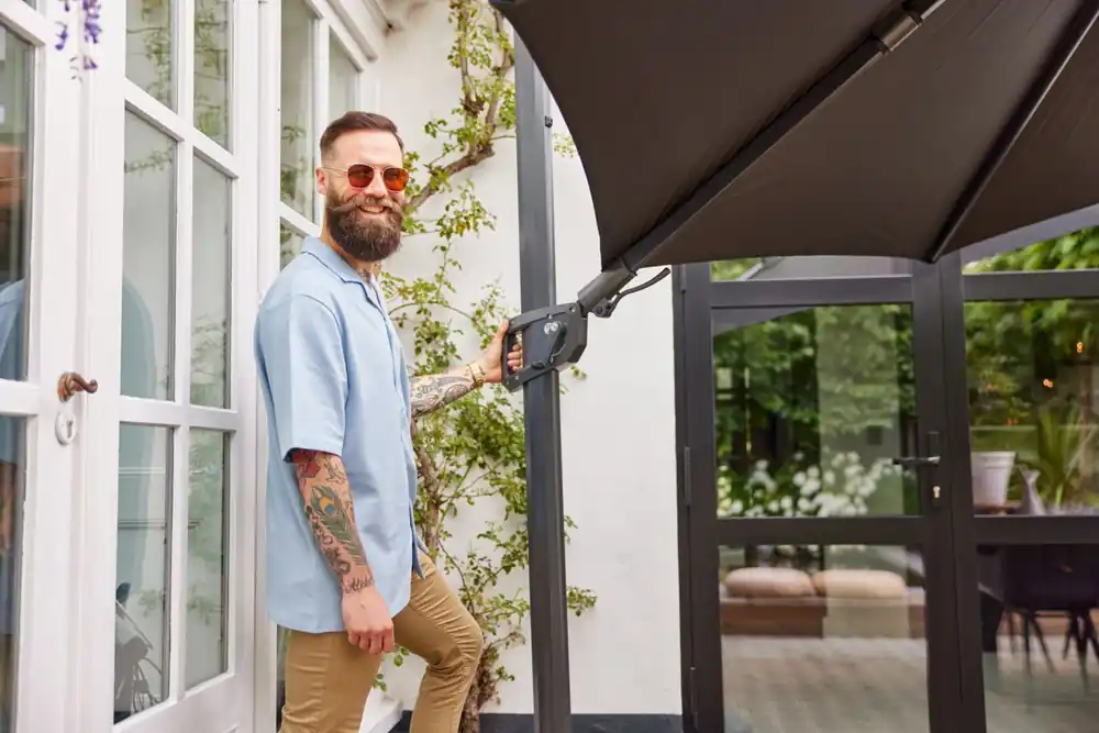Elk t?? zonnig plekje wordt snel omgetoverd tot een comfortabele schaduwplek, zodat je van de tuin kunt genieten. Onze zwevende Shadowflex parasols zijn licht, gemakkelijk te plaatsen en op te zetten. De Shadowflex parasols beschikken over een flex functie, dit betekent dat de parasol echt naar alle kanten verstelbaar is. Het doek is eenvoudig te ontvouwen door de slinger.
