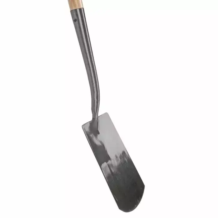 Deze spade is geschikt voor het spitten in aarde en zware kleigrond. Tevens is dit blad blank geslepen dit houdt in dat het zichzelf slijpt, hierdoor glijdt hij makkelijker de grond in. De afmeting van het blad is 275x160mm. Om er plezierig mee te werken moet u vooral druk op de kruk (t-greep) zetten en de andere hand op het midden van de steel houden. De scherpe snede zorgt ervoor dat de spade soepel in de grond gestoken kan worden. De 76cm lange steel is voorzien van een glasfiberkern, deze is elastischer en sterker dan een compleet houten steel.