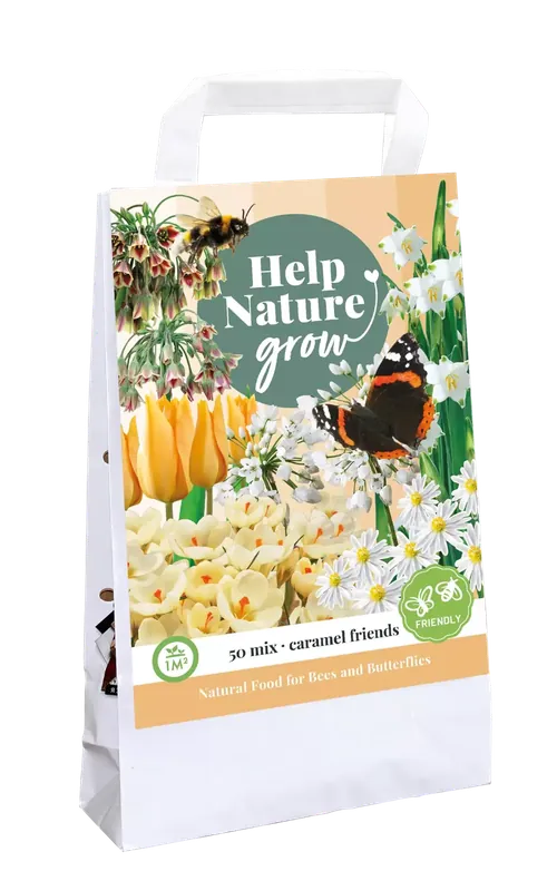 1 Tas met een bij- en vlinderaantrekkend bollenmengsel.50 Bloembollen in een mix van 6 soorten. U kunt zegoed combineren met vaste planten en heesters.