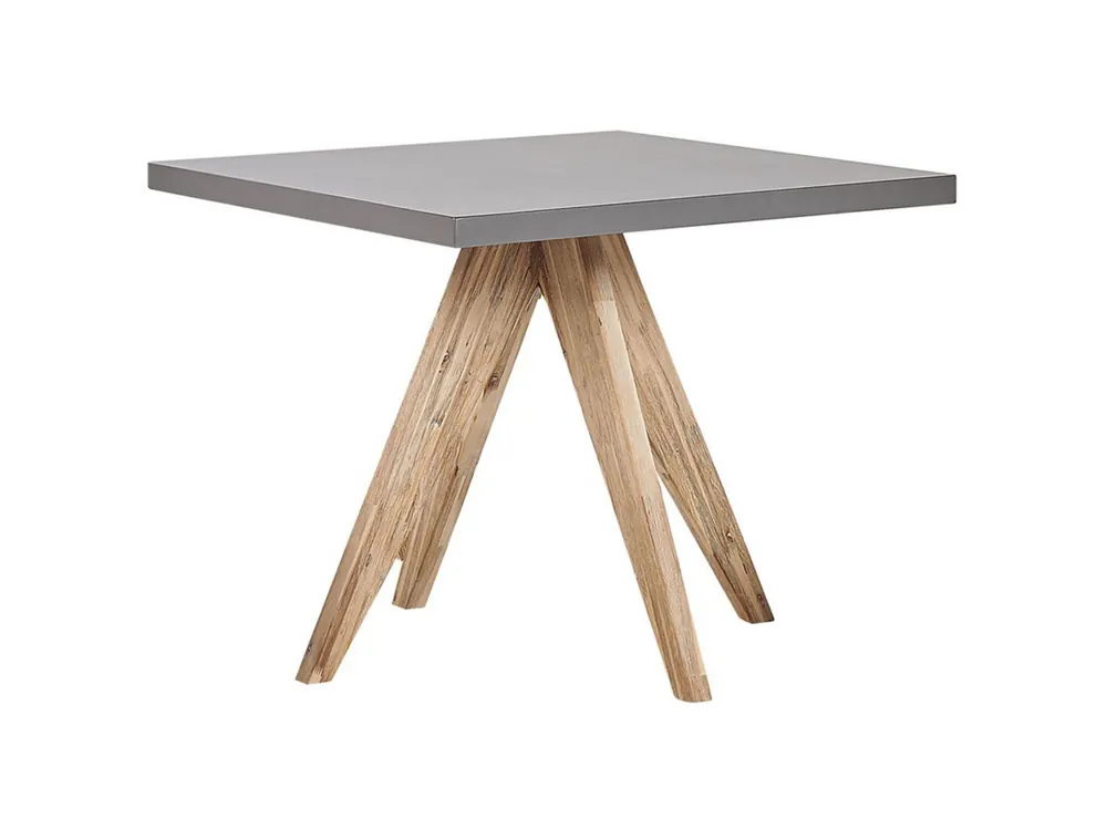 Moderne tuintafel van vezelcement en acaciahout. Geef je tuin meer sfeer met deze eettafel, die het dineren met familie en vrienden zoveel leuker maakt. Het tafelblad is perfect voor buitengebruik, omdat het gemakkelijk te reinigen en te onderhouden is en bestand is tegen verschillende weersomstandigheden. De poten zorgen voor de nodige stevigheid en vormen een opvallend contrast met het blad. Deze tafel past zeker in een modern of minimalistisch ingerichte tuin.Details: Producttype: Tuintafel. Stijl: Industrieel. Kleur: Grijs. Soort materiaal: Beton. Hoofdmateriaal: Vezelcement. Overig materiaal: Acaciahout. Material poten: Hout. Materiaal bovenkant: Beton. Vorm: Vierkant. Afwerking: Gelamineerd. Aantal zitplekken: 4 personen. Afmetingen: Breedte: 90 cm. Lengte: 90 cm. Hoogte: 76 cm. Gewicht: 39 kg. Draagvermogen: 150 kg. Aanbod omvat: 1 x Tafel. Belangrijkste eigenschappen: Past bij vele interieurstijlen, Minimalistisch, Scandinavische stijl, Stabiele en duurzame constructie, Hoogwaardig materiaal, Weersbestendig materiaal, Beschermdoppen voor oppervlaktebescherming. Montageinformatie: Volledige montage vereist.5-15 min.. Extra informatie: Voor dit product bieden we een gedetailleerd onderhoudsboek aan om ervoor te zorgen dat het meubilair er zo lang mogelijk goed uit blijft zien. Bekijk de onderhoudsinstructies en tips om goed voor je nieuwe product te kunnen zorgen – je vindt deze bij de montagehandleiding van het product op onze website., Afhangend van de luchtvochtigheid, kunnen betonnen meubels met de tijd barstjes, kleine gaatjes en onregelmatigheden in kleur vertonen. Dit is een eigenschap van het materiaal en heeft geen invloed op de kwaliteit van het product. Tekst weerstand: UV-bestendige meubels hebben een verhoogde weerstand tegen vervaging of verkleuring. We raden echter aan om het product overdekt of onder een beschermhoes te bewaren wanneer het niet in gebruik is. Dit zorgt ervoor dat je langer kunt genieten van je tuinmeubels. Weerstand: Spat- / vochtbestendig. Onderhoudstips: Vezelcement. 1.Gebruik geen zure, schurende of vettige schoonmaakmiddelen. Deze kunnen namelijk vlekken achterlaten., 2.Gebruik buiten het seizoen een beschermhoes of zet de meubels op een koele, droge plek., 3.Het betonnen meubilair moet worden afgedekt tegen hevige regenval. Acaciahout. 1.Maak schoon met een mild schoonmaakmiddel en een zachte doek met de houtnerf mee. Droog meteen na reiniging., 2.Geoliede meubels zullen voor gebruik en na het seizoen v????r het opbergen opnieuw in de olie gezet moeten worden, vooral in een vochtig klimaat., 3.Maak buiten het seizoen en bij regen gebruik van een beschermhoes of plaats wanneer mogelijk de meubels op een koele, droge plek.