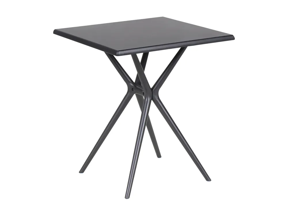 Minimalistische tafel voor buiten. Maak je buitenruimte mooier met deze minimalistische tuintafel in een klassieke zwarte afwerking. Hij is gemaakt van duurzaam kunststof en is zowel weerbestendig als licht van gewicht. Hierdoor is hij gemakkelijk te verplaatsen en te gebruiken, of het nu regent of zonnig is. Het strakke ontwerp voegt een modern tintje toe aan elke buitenruimte.Details: Producttype: Tuintafel. Stijl: Scandinavisch. Kleur: Zwart. Soort materiaal: Kunststof. Hoofdmateriaal: Synthetisch materiaal. Overig materiaal: Glasvezel. Material poten: Kunststof. Materiaal bovenkant: Kunststof. Vorm: Vierkant. Afwerking: Mat. Aantal zitplekken: 4 personen. Afmetingen: Breedte: 70 cm. Lengte: 70 cm. Hoogte: 77 cm. Gewicht: 8 kg. Draagvermogen: 100 kg. Aanbod omvat: 1 x Tafel. Belangrijkste eigenschappen: Minimalistisch, Scandinavische stijl, Past bij vele interieurstijlen, Hoogwaardig materiaal, Stabiele en duurzame constructie, Weersbestendig materiaal. Montageinformatie: Gedeeltelijke montage vereist.5-15 min.. Tekst weerstand: Het product is gemaakt van UV-bestendige materialen, zodat hij buiten gebruikt kan worden zonder dat de kleur vergaat. Weerstand: UV-bestendig. Onderhoudstips: Synthetisch materiaal. 1.Maak schoon met een mild schoonmaakmiddel op zeepbasis en een zachte doek., 2.Houd uit de buurt van warmtebronnen, zoals de barbecue of vuurkorf, aangezien vonken het meubelstuk kunnen beschadigen. Leg daarom ook geen hete gebruiksvoorwerpen, zoals hete barbecuetangen, op het oppervlak., 3.Het materiaal is bestand tegen gemiddelde weersomstandigheden. Maak buiten het seizoen gebruik van een beschermhoes of bewaar de meubels op een koele, droge plek.