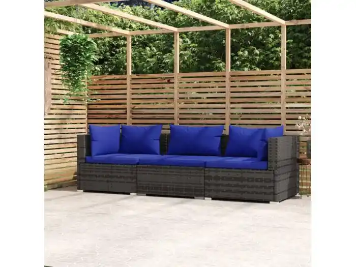 Tuinbank 3-zits met kussens poly rattan grijs