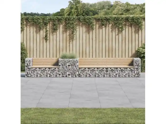 Tuinbank met gabionmand van massief grenenhout