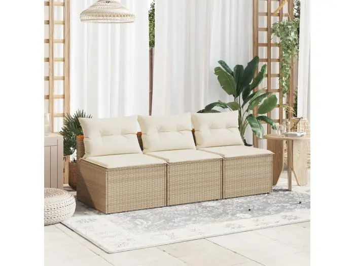 Tuinbanken 2 st zonder armleuning met kussens poly rattan beige