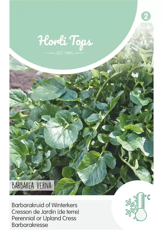 Barbarakruid of WinterkersVanaf half maart tot september in de vollegrond, breedwerpig of in regels. Gebruik: vers blad geeft een pittige smaak aan salades en kwark alsmede bij vlees. Het gewas kan vrij goed vorst verdragen.