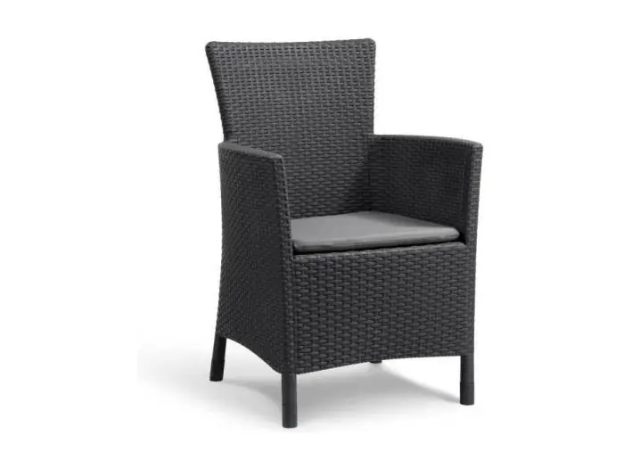 De stoel heeft comfortabele armleuningen en een ergonomisch gevormde rugleuning voor een heerlijk zitcomfort. Er wordt een bijpassend kussen meegeleverd. Deze comfortabele tuinstoel is gemaakt van slijtvast, weerbestendig en onderhoudsvrij kunststof. Hij is duurzaam en slijt- en roestvast. Dankzij het moderne design past de tuinstoel bij elke tuinset of tuintafel.