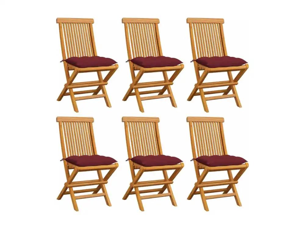 Tuinstoelen 6 st met wijnrode kussens massief teakhout