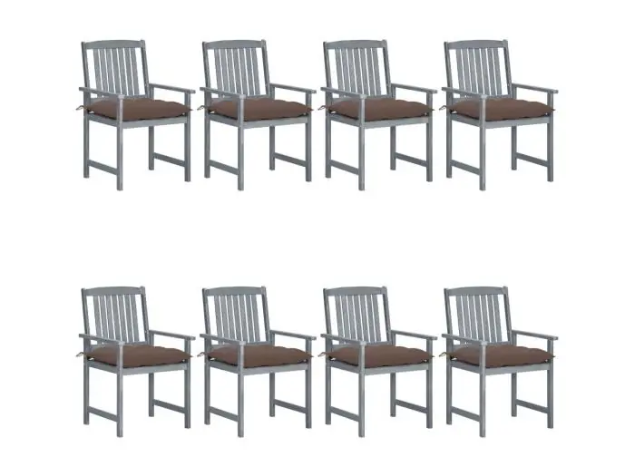Tuinstoelen 8 st met kussens massief acaciahout grijs
