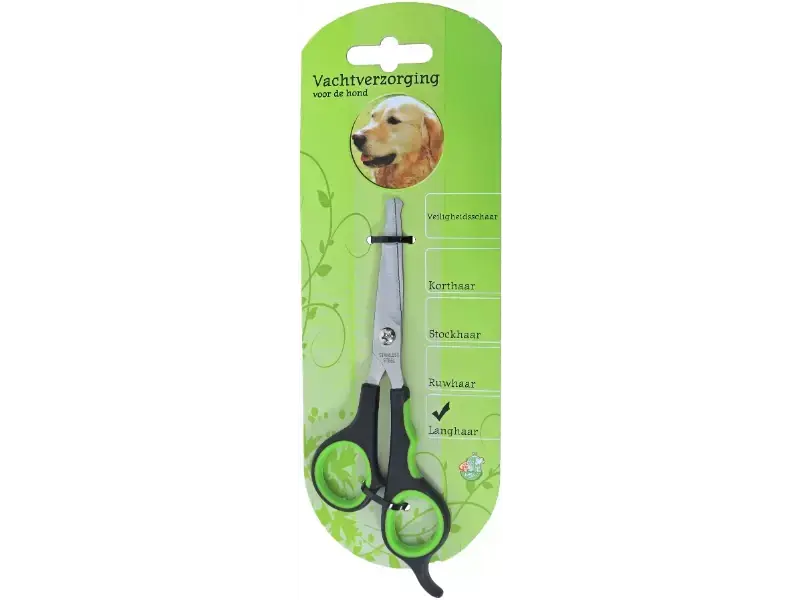 Deze veiligheidsschaar is geschikt voor het bijpunten van de vacht op moeilijk bereikbare en/of gevoelige plekken, zoals bijv. het hoofd, de oren of de voetzolen. Deze contourschaar is geschikt voor alle honden met een langharige vacht. Het regelmatig kammen en borstelen van uw hond draagt er aan bij dat de vacht in topconditie blijft. Zo blijft de vacht glanzend schoon en ontstaan er minder snel klitten. Verzorg de vacht altijd in de richting van de haargroei, zodat de verzorging voor zowel u als uw hond vlekkeloos verloopt.