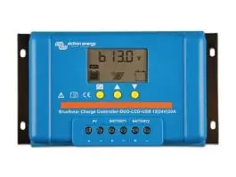 De Victron BlueSolar PWM Duo laadregelaar werkt op basis van PWM (Pulse Width Modulation) techniek en biedt een goede oplossing om 2 accu??s gelijktijdig te laden door middel van zonne-energie. LCD-schermDe Victron BlueSolar PWM Duo laadregelaar heeft een duidelijk LCD-scherm waarop je de laadstatus van de accu’s kunt bekijken en eenvoudig instellingen kunt controleren.USBDe Victron BlueSolar PWM Duo laadregelaar is voorzien van twee 5V USB-poorten met een maximaal laadvermogen van 2A. Hiermee kun je USB-apparaten gemakkelijk aansluiten en opladen.Programmeeralgoritme voor acculadingDe Victron BlueSolar PWM Duo laadregelaar bevat voorgeprogrammeerde laadalgoritmen voor verschillende soorten accu’s, zoals AGM, GEL, Flooded (natte accu??s) en LiFePO4-accu??s (alleen lithiumaccu??s met intern BMS).Twee accu’s tegelijk ladenDe Victron BlueSolar PWM Duo laadregelaar kan twee accu’s tegelijkertijd opladen. Standaard wordt het laadvermogen gelijk verdeeld over beide accu’s, maar dit kun je naar wens aanpassen. Elke accu krijgt in de basisinstelling maximaal 10A laadvermogen.LaadstappenDe Victron BlueSolar PWM Duo laadregelaar laadt en onderhoudt de accu in drie fases: bulk-, absorptie- en druppellading. De laaduitgang, het laadvermogen, laadvoltage en laadalgoritmen zijn niet programmeerbaar.Automatische herkenning van systeemvoltageDe Victron BlueSolar PWM Duo laadregelaar herkent automatisch het systeemvoltage (12V of 24V) van het aangesloten systeem.VoltagesDe Victron BlueSolar PWM Duo laadregelaar hanteert vaste absorptiespanningen: 14,2V voor 12V-accu??s en 28,4V voor 24V-accu??s. De druppellaadspanning is vastgesteld op 13,8V voor 12V-accu??s en 27,6V voor 24V-accu??s.