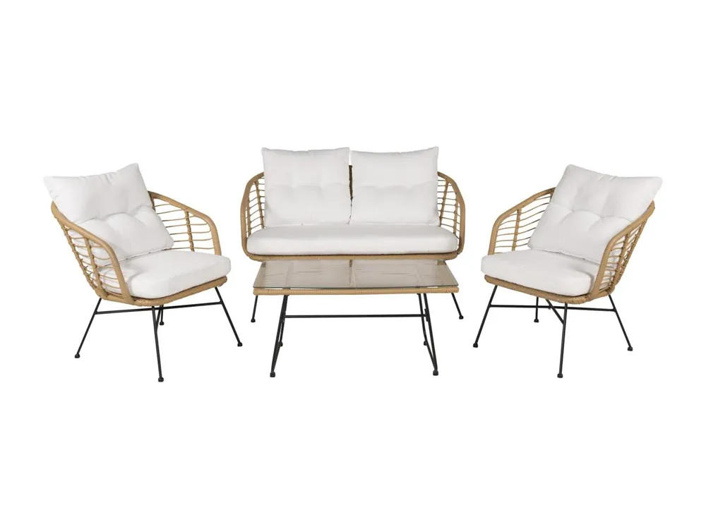 Viga tuinset 4-delig wit, naturel is een tuinset in de kleur wit die zowel stijl als functionaliteit in huis brengt. Viga tuinset 4-delig wit, naturel. Salontafel H x D x B cm: 39,5 x 68,5 x 49,5. Bank H x D x B cm: 76,5 x 81,5 x 127. Zitbreedte cm: 115. Zithoogte cm: 36. Zitdiepte cm: 51,5. 2 stoelen. Rugleuning is verstelbaar: Nee. H x D x B cm: 76 x 82 x 70. Dit product is gemaakt met oog voor detail, wat zowel esthetische aantrekkingskracht als hoge duurzaamheid garandeert. Het is ontworpen met zowel functionaliteit als stijl in gedachten, waardoor het de perfecte keuze is voor elke kamer in uw huis. De gebruikte materialen zijn van hoge kwaliteit, waardoor het product een lange levensduur heeft en bestand is tegen dagelijks gebruik. Of het nu voor opslag is of als decoratieve toevoeging, dit product zal uw interieur naar een hoger niveau tillen en extra comfort en elegantie in uw huis brengen.