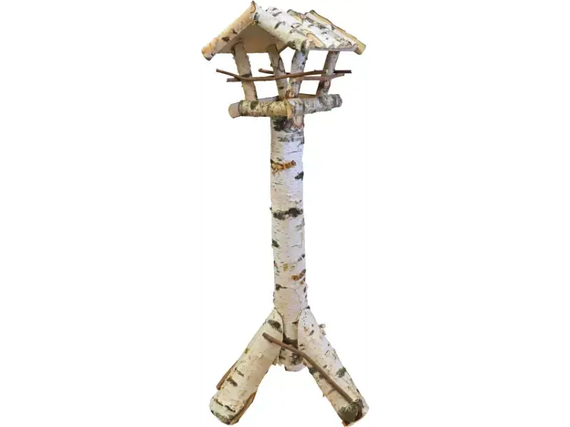 Voederhuis berken met geribbeld berken dak op poot is een gezellig en duurzaam voederhuis voor vele soorten buitenvogels. Het voederhuis is makkelijk te verplaatsen en is gemaakt van stevig berkenhout en afgewerkt met een berken dak. Het huisje kan het gehele jaar gebruikt kan worden. Zo zullen diverse soorten buitenvogels uw tuin bezoeken, die u op hun beurt laten genieten van hun aanwezigheid en bedrijvigheid.