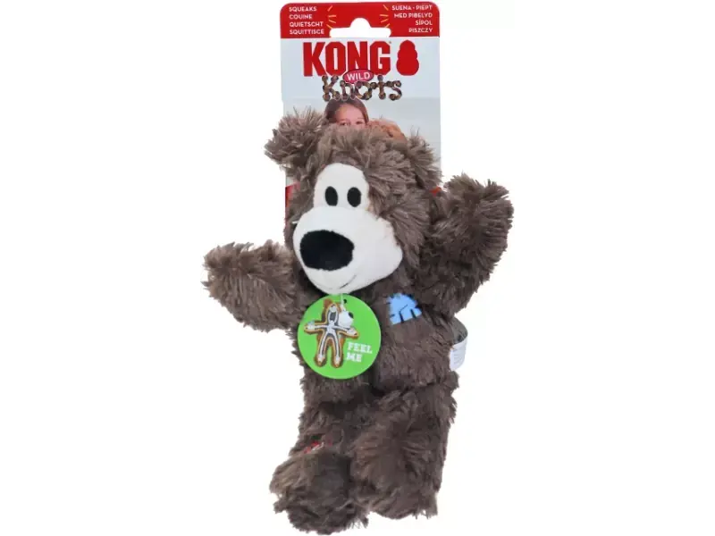 KONG Wild Knots zijn zachte knuffels aan de buitenkant met duurzaam en sterk geknoopt touw aan de binnenkant. Het aan de binnenkant geknoopte touw voldoet aan de natuurlijke instincten van uw hond en het versterkte pluche lichaam biedt extra duurzaamheid. KONG Wild Knots hebben een minimale hoeveelheid aan vulling voor een minimum aan zooi. Alsof dat niet genoeg was, piepen ze!