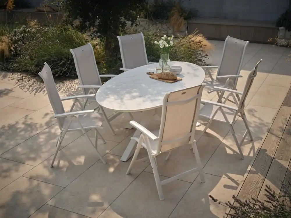 Op zoek naar iets anders dan de standaard rechthoekige tafel? Ontmoet de Xander dining tuintafel! Het uit keramiek vervaardigde ovale tafelblad rust op een stevig aluminium onderstel. Een perfecte keuze voor wie op zoek is naar een praktische, maar stijlvolle tuintafel.