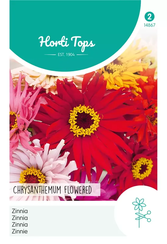 Zinnia – ChrysantbloemigZinnia??s worden niet graag verplant en dus is het beter ze eind april tot eind juni in rijen op de bestemde plaats te zaaien. Prachtige snij- en perkplant, groeit het liefste op een warme zonnige plaats. Bloeit zeer langdurig.