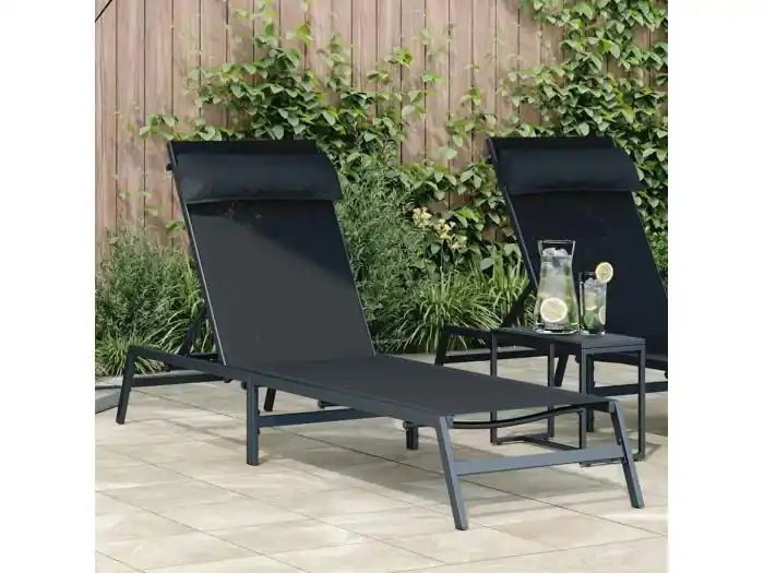 Zwarte chaise longue 197 x 54 x 86 cm Staal en textiel