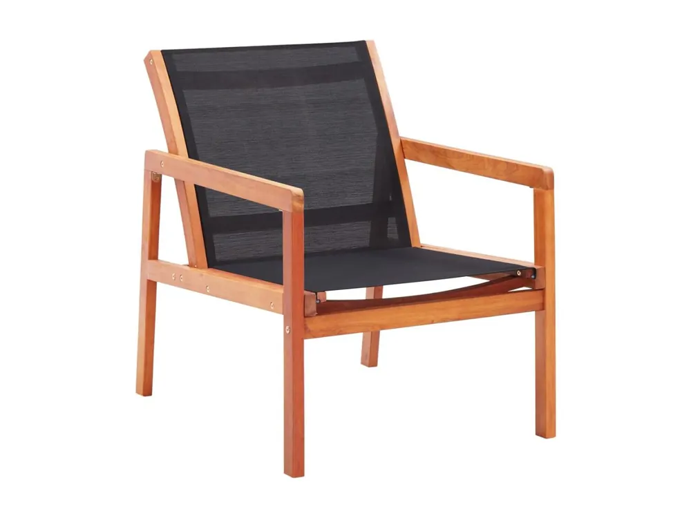 Zwarte tuinstoel van massief eucalyptushout en textileen